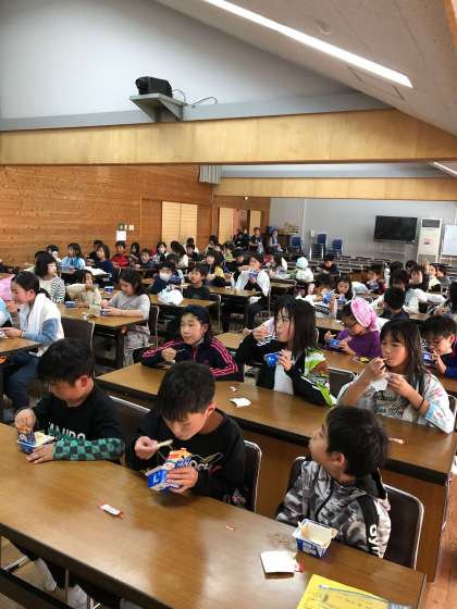 登山後に食べる予定だったアイルクリームを、時間の関係でお風呂上りに食べました。子どおたちは、「お風呂上がりのほうがすっきりしておいしい!」「ありがとう!」と先生たちに伝えていました。登山を頑張ったから、余計においしいですね。