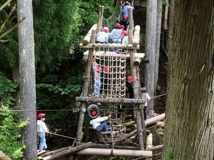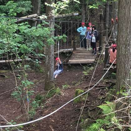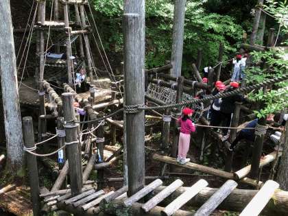 お手に気に恵まれ、アスレチックコースも乾いていたので、みんな次ぐ次ぐとコースを回っていました。4子どもたちは、本当に元気です。高いところが苦手も子もいて、助け合ったり励ましあったりする声が、あちらこちらで聞こえていました。とっても協力体制がしっかりしている感じが伝わってきました。