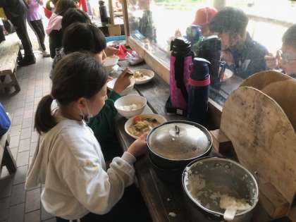 手早く、ご飯と、鶏すき焼き風煮を作りました。 薄味だったので、スープまで美味しくいただきました。ご飯も硬め、柔らかめとさまざまでしたが、自分たちで作ったご飯は、格別です。