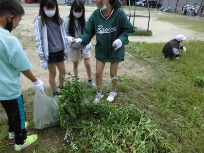 ナチュラルガーデンの周りや遊具場奥など、普段は利用しないところを担当し、みんな汗をかきながら一生懸命取り組みました。