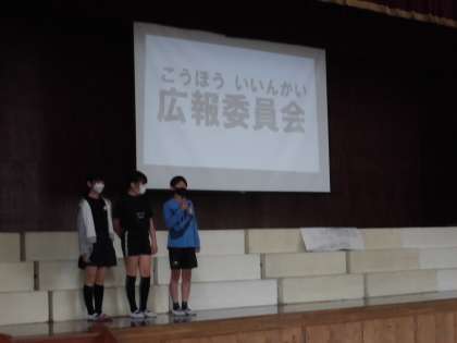 今日の全校集会では、各委員会の委員長と副委員長の紹介がありました。