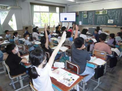 道端の小さな草や花に、そっとはく手を送りたくなった登場人物の思いを考えることを通して、自然を大切にすることについて考えました。