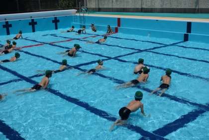 自分や友だちに水をかけたり、わに歩きで移動したりして楽しみました。