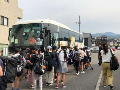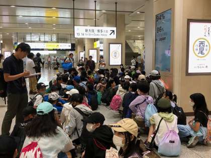学校を出発してバスに乗り京都駅へ。早めに到着したので、トイレ休憩も新幹線の座席に並びかえるのも、ゆっくりできました。マナーを守って静かに待っていた子どもたちです。6年生全員揃って、新幹線に乗って京都を出発しました。
