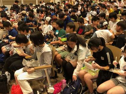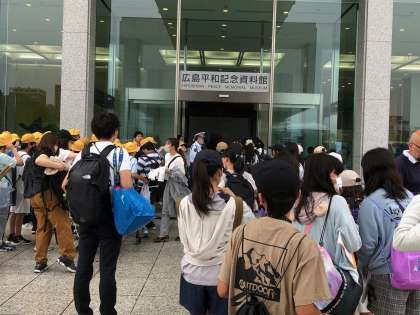 広島平和記念資料館に入り、急遽手配してくださったホールと会議室でお弁当を食べました。グループでお話ししながら和気あいあい、とはいきませんでしたが、用意してくださったお弁当を美味しくいただきました。