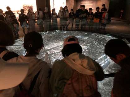 平和記念資料館を見学しました。けっこう混み合っていて、思い通りに見学できなかったところもありましたが、熱心に資料を見て、メモをとっていました。感じることがたくさんあったようです。