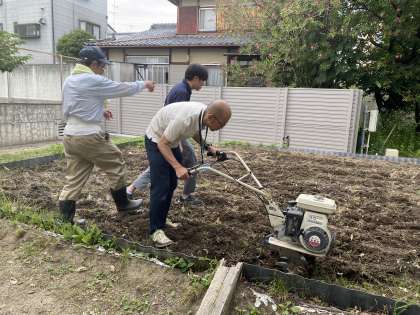 肥料をまいて、土を起こしています!!来週の田植の準備しています。
