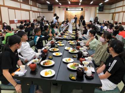 ホテルでの夕食は、品数も多く、豪華。たくさんの子がほぼ完食していました。美味しかったです。