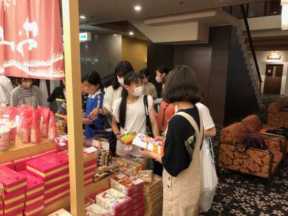 お土産を買うグループと入浴グループの入れ替えです。クーポンを受け取って、お買い物。お土産を渡す人のことを話しながら買っている子もいました。