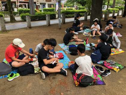 姫路城前の公園で、お昼のお弁当を食べました。木陰を選んで食べていましたが、晴れたり曇ったり。心地よい風が吹いて、食も進みました。