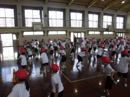 1年生は体育館でダンスをしました。