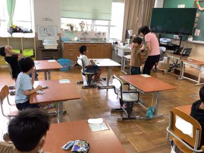 1年生も2学期から、日直のお仕事を頑張っています。朝の会では、上級生の手本を見て仕事のやり方を覚え、予定の確認や健康観察など、しっかりと友達の名前を呼んで、進めていました。