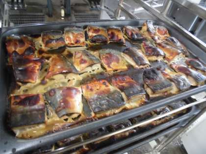 さばのつけ焼きは、しょうが・三温糖・みりん・料理酒・しょう油に漬け込んだ「さば」をスチームコンベクションオーブンで焼きました。皮がパリッとして香ばしく美味しかったです。