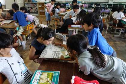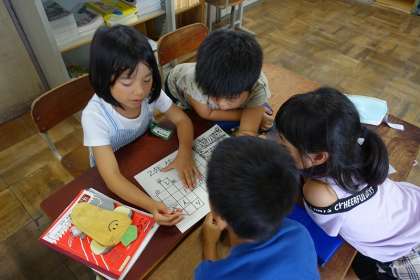 書かれているヒントをもとに、グループで協力して解いていました。
