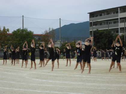 団体演技『2023 嵯峨野ソーラン 一心』の様子です。夏休み明けから練習に取り組み頑張ってきました。4年生の『魂』と『熱』は確かに嵯峨野小学校の運動場に存在し、観戦している人の心に響くものがあったと思います。本当に良く頑張りました。