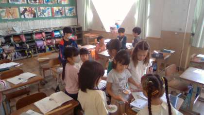 がまくんやかえるくんなど、演じる役を決めて読み方や動作についてグループで話し合いました。どんな音読げきになるのか楽しみです。