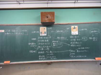 織田信長と豊臣秀吉のしたことについて学んだあと、「天下統一により大きな働きをしたのはどちらの武将か?」について考えました。まず、それぞれが意見をまとめたあとにペアや全体で議論をしました。「有力な武将との戦いに勝利したのは織田信長だよ」「実際に天下統一をしたのは豊臣秀吉だ」などと今までの学習で学んだことを生かしながら議論を進めることができました。