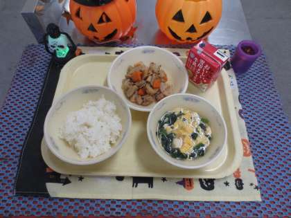 今日の給食は、ごはん、牛乳、筑前煮、かきたま汁です。