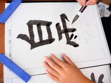 今日は、大小の大きさに気を付けて「白雲」を書きました。画数の少ない文字は小さく、画数の多い文字は大きく書くとバランスが良いと気付きました。今まで習った、曲線や点のかき方も意識しながらできました。
