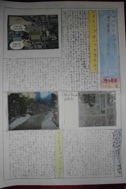 校長先生のお話を聞き、芝生やビオトープが当時の子どもたちの願いから作られたこと、当時の子どもたちや地域の方々の手で作られたこと、そして、大切に守られてきたことを知ることができました。