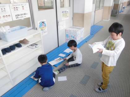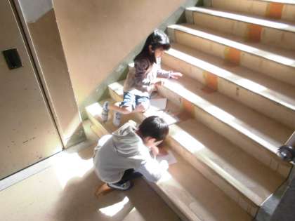 いろいろな場所のでこぼこを見つけては紙に色を付けていました。