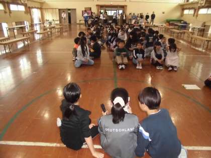 総合的な学習で取り組んで実践したことについて発表会を行いました。写真はオープニングの様子です。