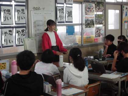 紹介する人の職業や性格などその人物の特徴を英文に表し、伝え合いました。