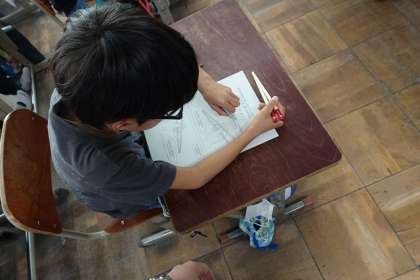 おはしの正しい持ち方と、自分のおはしの持ち方を見比べて、どこが違うのか考えました。