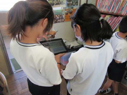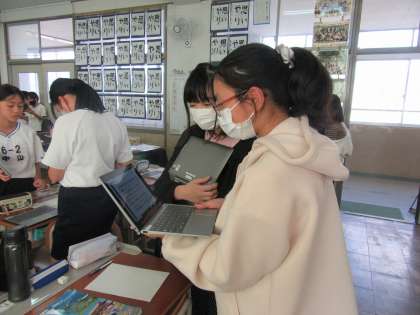 それぞれの文化や学問で活躍した人物や代表的な作品などを相手に分かりやすいようにGIGA端末を使って伝えていました。