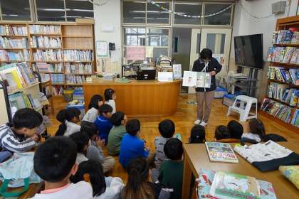図書室で、学校司書の先生に読み聞かせをしてもらいました。海にうかぶプラスチックが、他の生き物や環境によくないことを知りました。