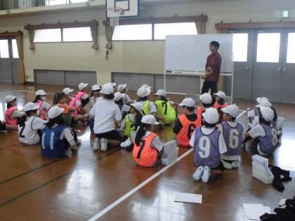 今日は雨のため、体育館で行いました。