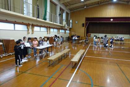 本番に向けて、リハーサルをしました。聞きに来てくれた人に聞こえる声の大きさか、文字が良く見えるように持ちながら話せているか、確認し合いながら練習していました。