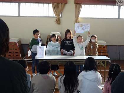 遠くに立っている人にも見えやすいように、画用紙を高くあげて発表する姿も見られました。