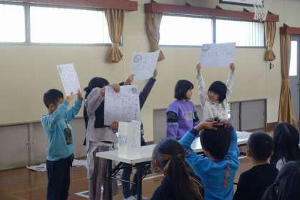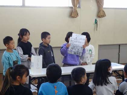 インタビューをして分かった働いている人の気もちを、絵で紹介したり、グループで協力してクイズを出す様子も見られました。