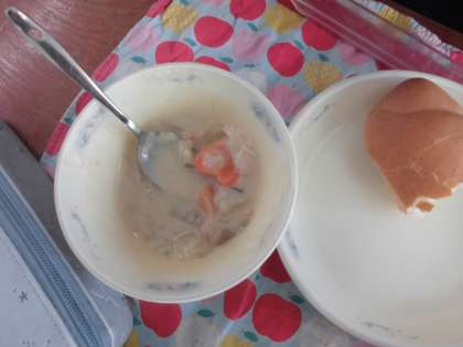 ハッピーキャロットの日だった今日は、きのこのクリームシチューでした。きのこが苦手なこどもたちもハッピーキャロットを探し求めてたくさんおかわりしていました。