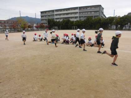 体育科では『なわとび』と平行して、『ゆっくりペース走』の学習に入りました。マラソン大会に向けて、4年生頑張っています。