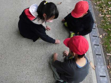どんぐりに爪楊枝を指してコマを作ってみました。