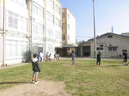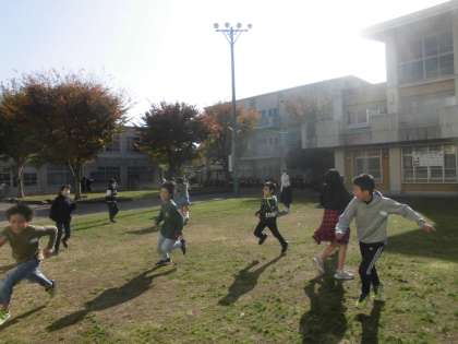 11月も末に近づき、寒い日が増えてきましたが、子どもたちは外で元気に遊んでいます。遊び場所で人気なのはやっぱり「芝生」です。ハンドベースボールや鬼ごっこなど、寒さに負けず動いています!