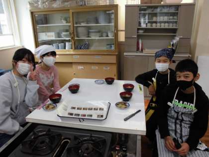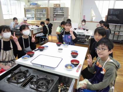 「おいしい!」「スープの味付けうまくいった」など自分たちで作った料理を味わって食べていました。