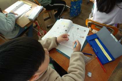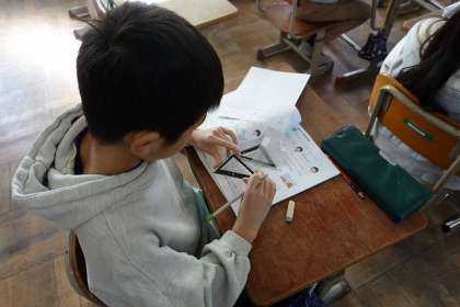 長方形や正方形、直角三角形のかき方の学習をしました。かいた後は、三角定規を使って、直角になっているかどうか、確かめていました。