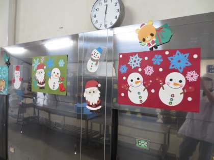 12月に入り給食室のホールはクリスマス仕様に飾られました。