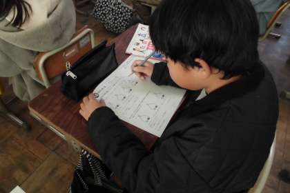 単元の学習の後には、プリントを使って、学んだことを復習しています。熱心に取り組んでいました。