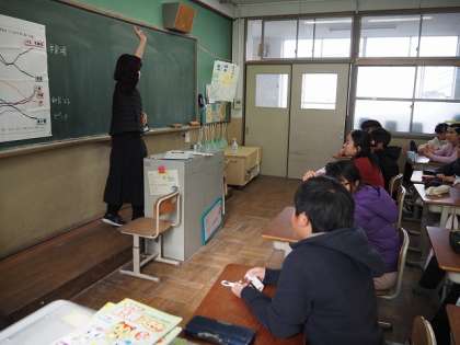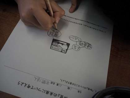 学活の和食について考える時間では、栄養教諭の先生に来ていただいて、和食のすばらしさについて改めて考えていました。総合学習でたくさん学習してきたので、知っていることばかりかとおもいきや・・・。和食が全然食べられていない現状を知り、大変驚いていました。もっと和食を広めていきたいという気持ちになっていました。