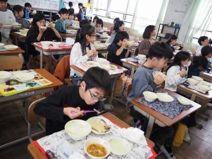 今日は大好きな和献立でした。最初は、おさかな・・・・と減らす子もいましたが、塩分がきいたさんまは食べてみるととてもおいしかったようです。口の中でご飯とおかずを合わせることを口中調味と知って、驚いていました。