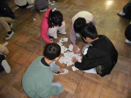 国語の時間に作ったカルタをで遊びました。4年生にもなると、文章がとても立派です。