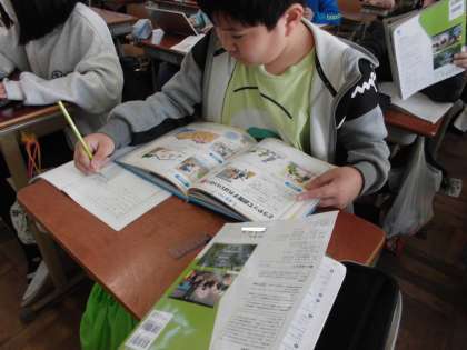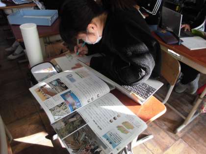 教科書やインターネットを活用しながら、自然災害の起こり方や自然災害から命を守るための取り組みについて調べました。自分が担当する自然災害についてとても集中して調べることができていました。