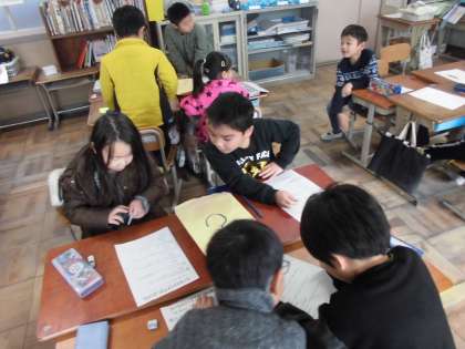見た目、におい、触った感じ、味などたくさんのヒントを自分たちで考えていました。