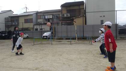 二つのチームにわかれて、ドッジボールを楽しみました。