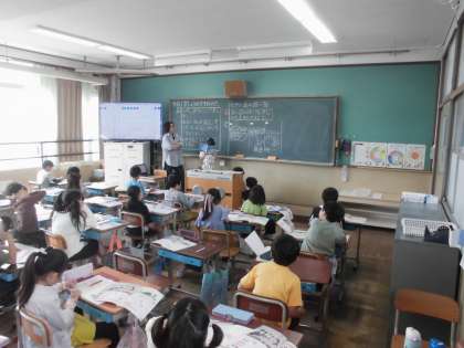 ノートの書き方や学習のすすめ方を確認しました。1年生で学んだ計算の考え方を、ノートにまとめ発表していました。