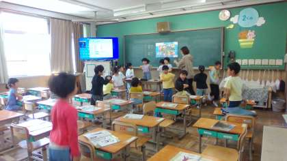 1年生になって初めての音楽の学習をしました。音の強弱を感じ取り、リズムにのって楽しみました。